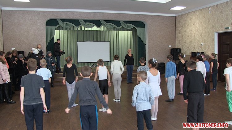 Урок хореографії у школі №36 вперше після ремонту проводять в оновленій актовій залі. Перевірити ремонт, на який з бюджету міста витратили 677 тис. грн, приїхав міський голова.