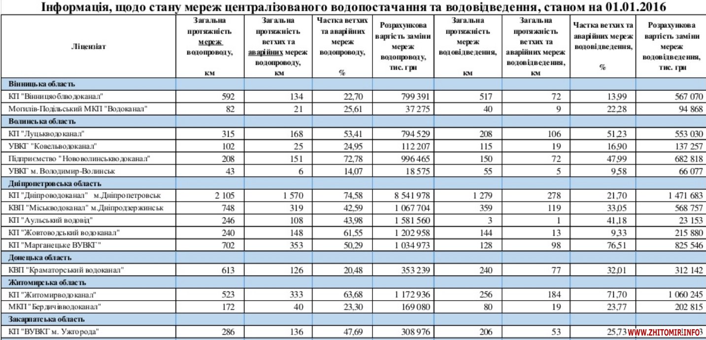 Нагадаємо, останній раз КП «Житомирводоканал» підвищувало тарифи влітку 2016 року: з 26 серпня житомиряни почали платити 11,9 грн за 1 куб.м води.
