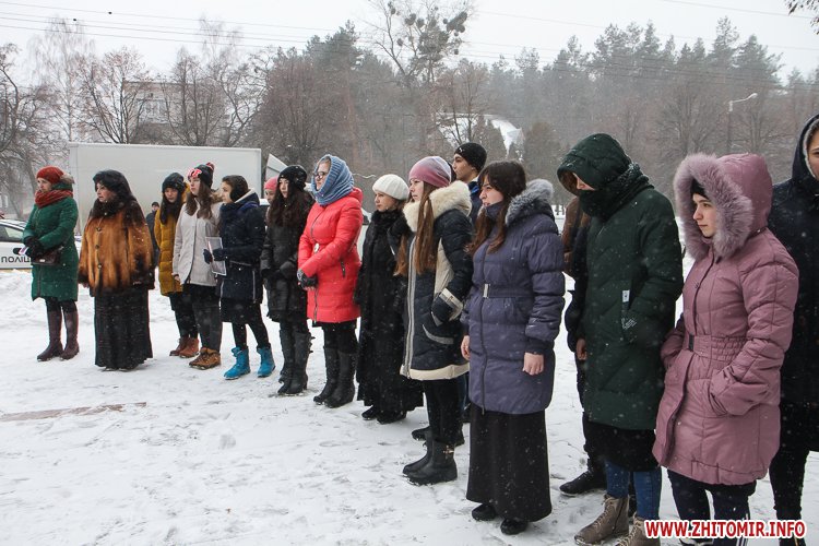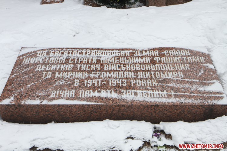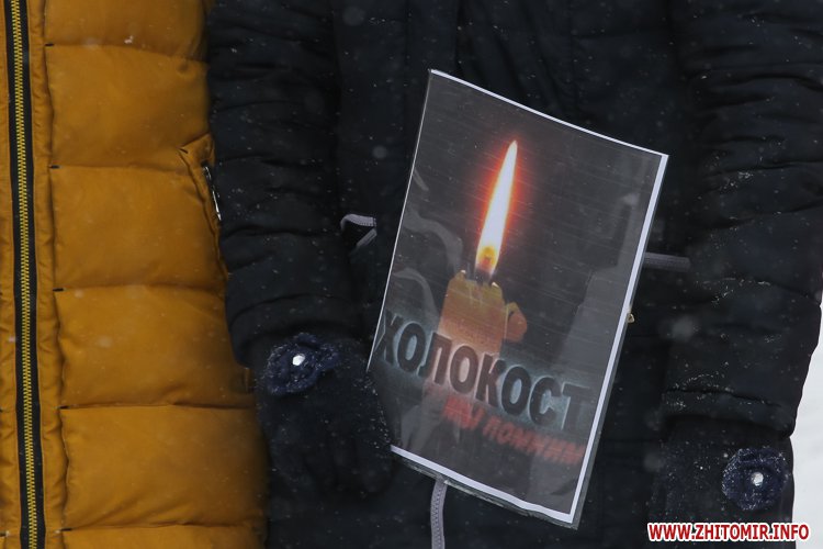 Близько півсотні житомирян зібралися 27 січня біля пам'ятного знаку «Жертвам фашизму», що на Богунії, аби вшанувати пам'ять жертв Голокосту.