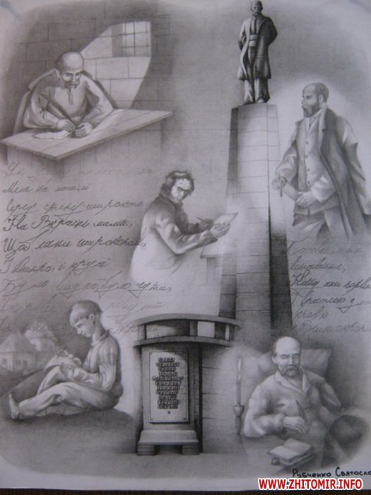 «У місті Житомирі 27 січня 2017 року відбувся обласний етап Всеукраїнського конкурсу учнівської творчості, присвяченого Шевченківським дням. Організатором Конкурсу є управління культури Житомирської обласної державної адміністрації. В ІІІ етапі Конкурсу представлено 74 роботи, а саме Андрушівської школи мистецтв, Баранівської школи мистецтв, Бердичівської художньої школи, школи мистецтв м. Новограда-Волинського, Іршанської школи мистецтв, Коростишівської художньої школи, Коростенської школи мистецтв ім.А.Білошицького, Овруцької художньої школи, Високопічської школи мистецтв, художньої школи Житомирської міської ради, музичної школи №1 ім.Б.М.Лятошинського Житомирської міської ради», - йдеться у повідомленні головного спеціаліста управління культури С.В.Осіпова.