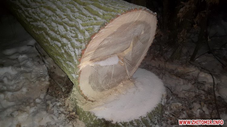 «У ніч з 27 на 28 січня поточного року працівниками Державної екологічної інспекції у Житомирській області поблизу села Левків в лісосмузі було виявлено групу осіб, які здійснювали незаконну порубку дерев породи дуб. На місце події було викликано слідчо-оперативну групу, де в ході спільних заходів було вилучено автомобіль марки ЗІЛ та дві бензопили. Наступного дня екологи спільно з працівниками головного управління Національної поліції в Житомирській області на місці порубки дерев вилучили деревину, провели заміри зрізаних дерев і розрахували шкоду заподіяну лісу, яка становить 161 478 грн», – йдеться у повідомленні управління Держекоінспекції.
