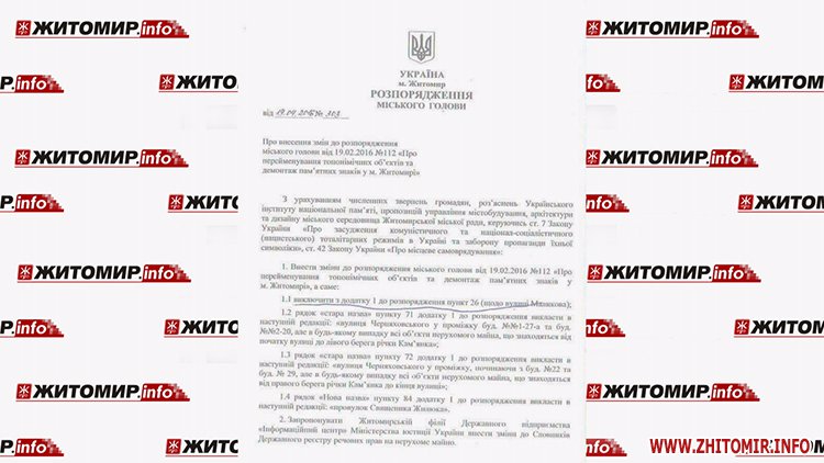Нагадаємо, міська влада хоче запровадити дворічний мораторій на перейменування топонімічних об’єктів в місті Житомирі.