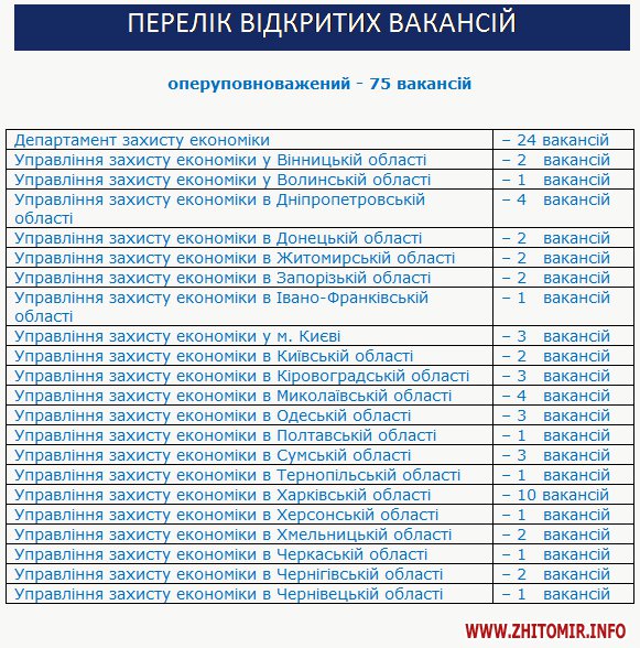 В управління захисту економіки в Житомирській області є дві вакансії.