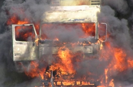 На стоянці однієї з заправок у Новоград-Волинському районі вночі 14 лютого загорілася кабіна вантажного автомобіля Volvo. Намагаючись не допустити загоряння причепу, водій отримав опіки рук.