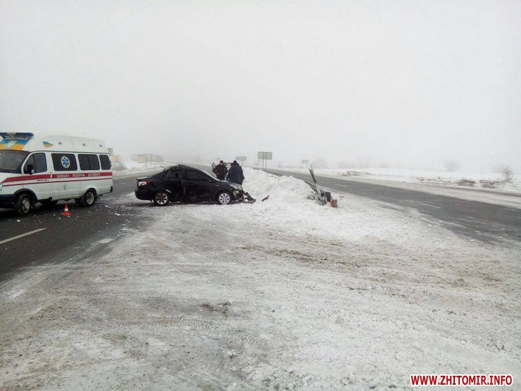 На 269 кілометрі траси Київ-Чоп у Житомирській області 15 лютого близько 8 години ранку слалася ДТП за участі автомобіля КІА.