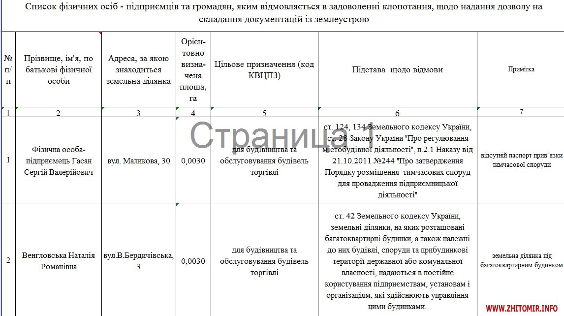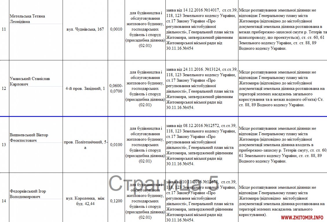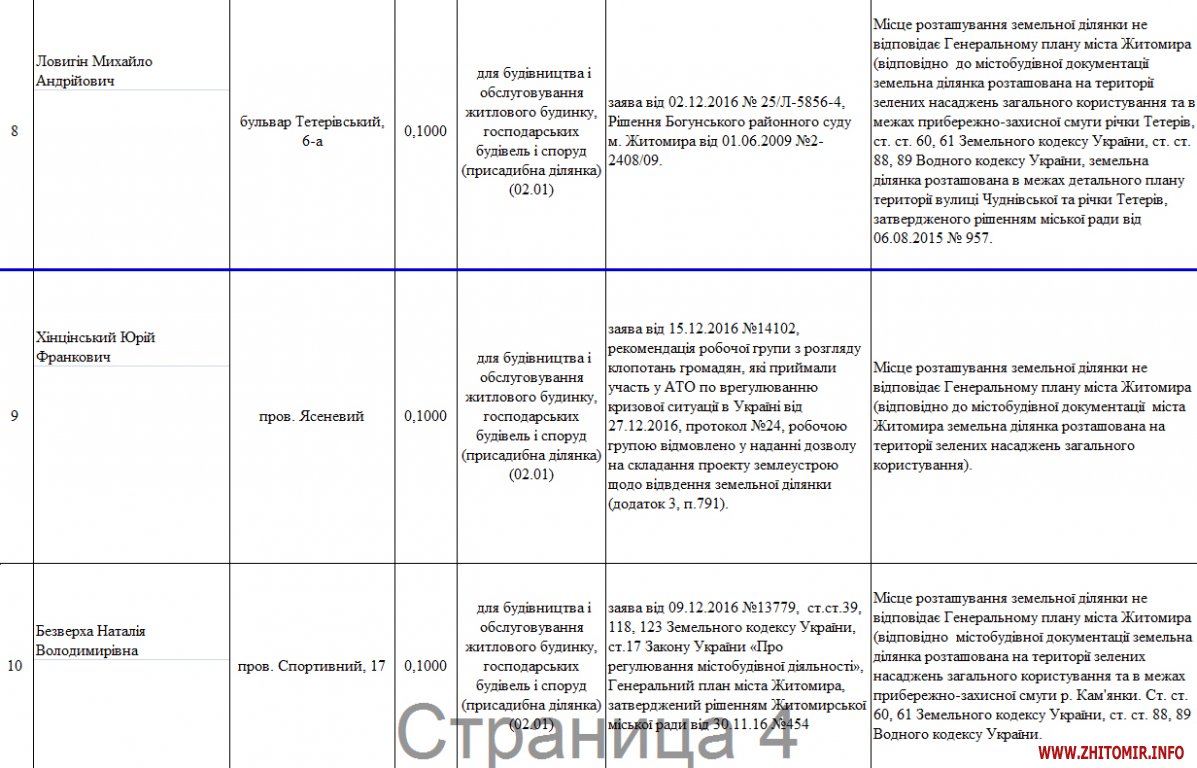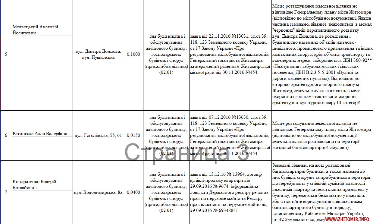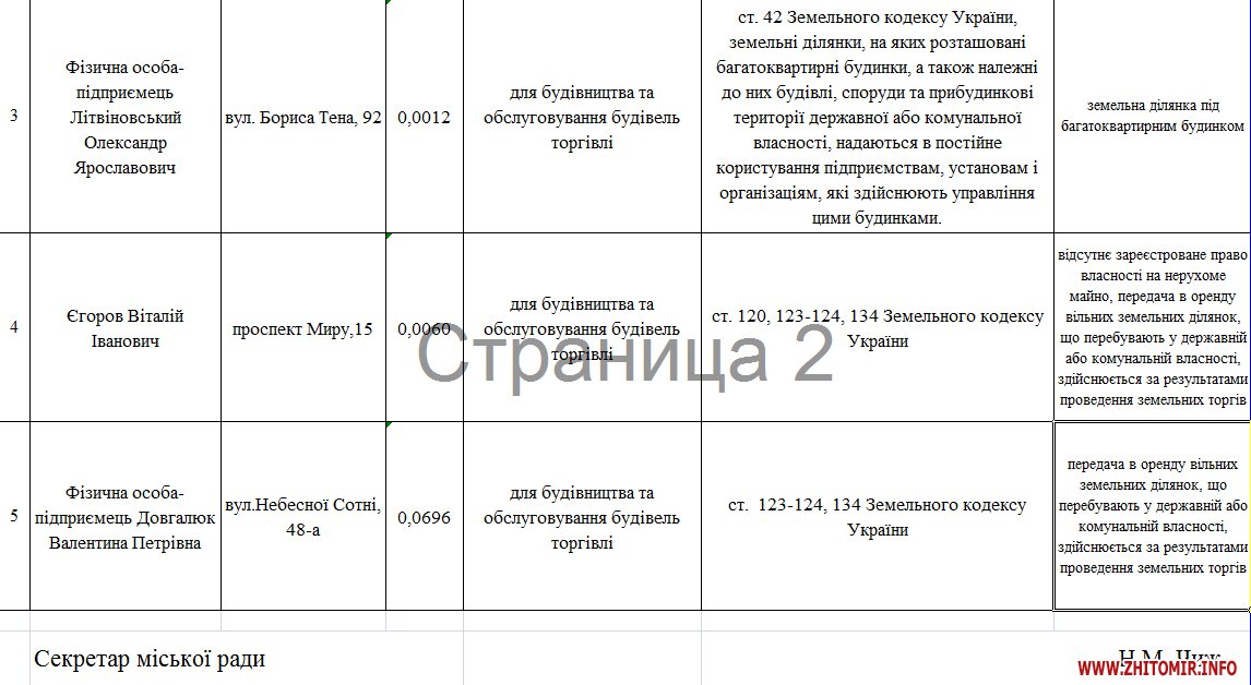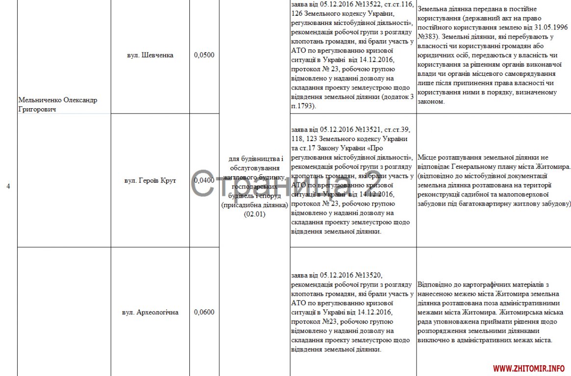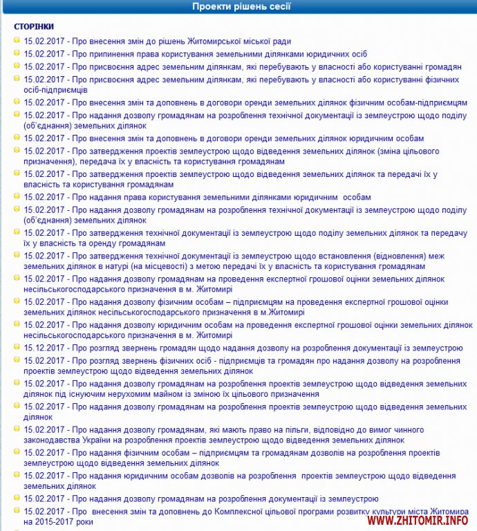 За один день Житомирська міська рада оприлюднила 23 проекти рішення сесії, які стосуються земельних питань.
