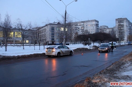 «За попередніми даними, автомобіль ВАЗ 2110, рухаючись по вулиці Шевченка, близько 16.30 здійснив наїзд на дівчинку-школярку, якій приблизно 10-12 років. Дівчинка переходила проїжджу частину по пішохідному переходу. Її госпіталізували із забоями колін та струсом головного мозку», - розповіла прес-офіцер патрульної поліції Житомира Діна Корчевна.