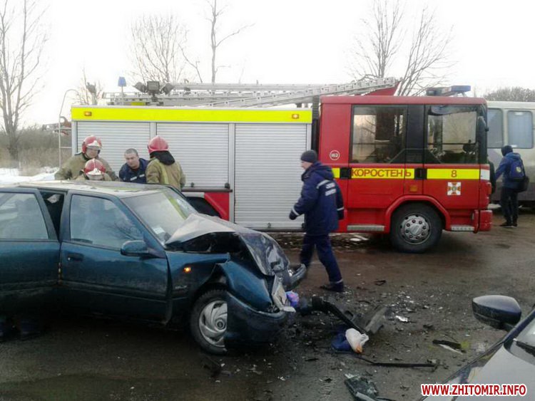 У Коростені 20 лютого о 17:00 на перехресті зіткнулися автомобілі Volkswagen Polo та Daewoo Espero. Унаслідок ДТП загинули двоє пасажирів Volkswagen та ще двох було травмовано. Їх та водія другого автомобіля госпіталізували. Поліція розпочала досудове розслідування.