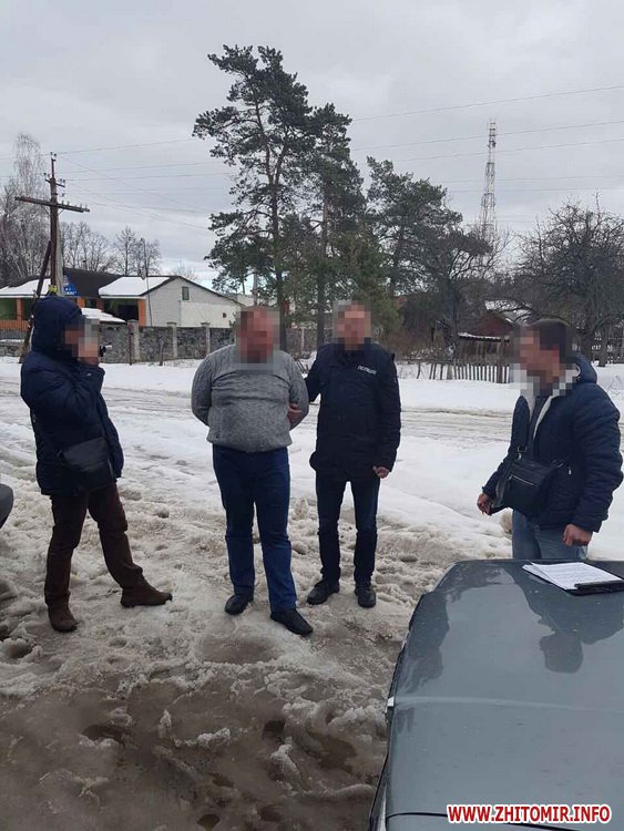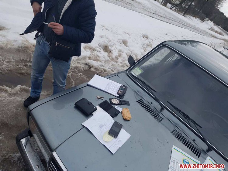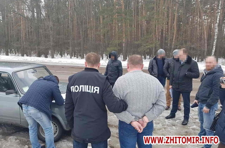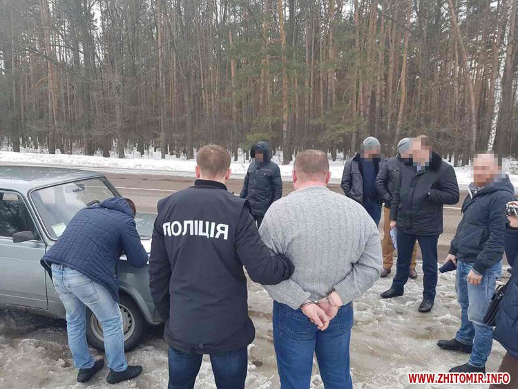 На Житомирщині 22 лютого у службовому автомобілі затримали заступника начальника одного із відділень поліції в області під час одержання хабара в 10 тис. грн, за які він обіцяв не притягувати до кримінальної відповідальності місцевого жителя.