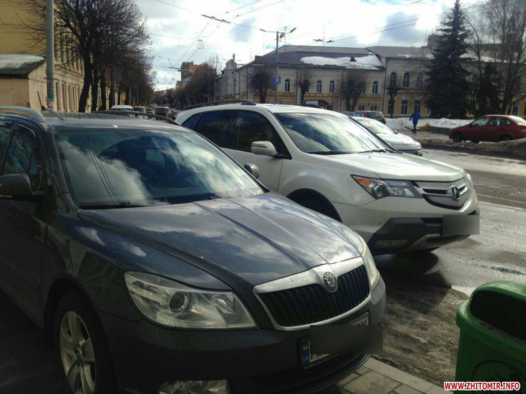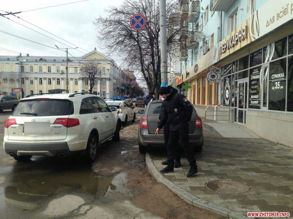 «Сьогодні, 22 лютого, по вулиці Великій Бердичівській, біля Житомирської міської ради (при виїзді з парковки міської ради) патрульні виявили автівку Acura, яка стояла з порушенням правил дорожнього руху, а саме була на виїзді з прилеглої території і обмежувала виїзд інших транспортних засобів. Паркування на виїзді категорично забороняється. Тим паче, на тій вулиці – інтенсивний рух, тролейбуси їздять і маршрутки. Водію загрожував штраф 255 грн. Але поки патрульні розмовляли з іншими водіями, чиї автківки теж були припарковані з порушеннями правил дорожнього руху, водій Acura, не дочекавшись патрульних, просто взяв і швидко поїхав», – сказала Діна Корчевна.