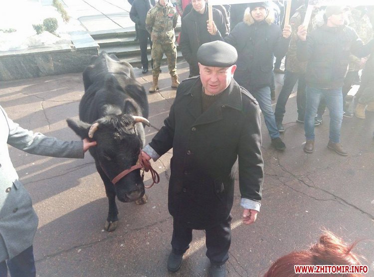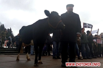 Зранку 23 лютого, перед початком сесії Житомирської обласної ради, біля адмінбудівлі на майдані Корольова зібралися люди, які виступають проти законопроекту про внесення змін до закону «Про вивізне (експортне) мито на живу худобу та шкіряну сировину», який начебто покликаний підвищити ефективність ведення галузі.