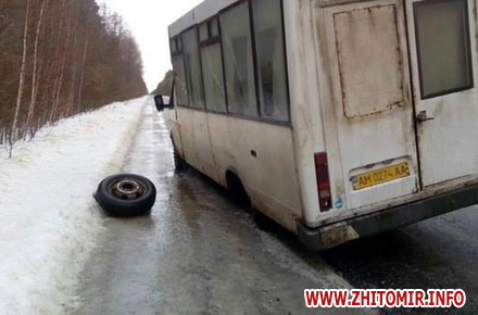 У маршрутки «Житомир-Баранівка» на дорозі 22 лютого відпало колесо.