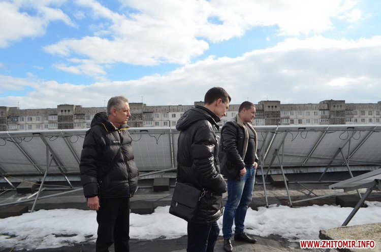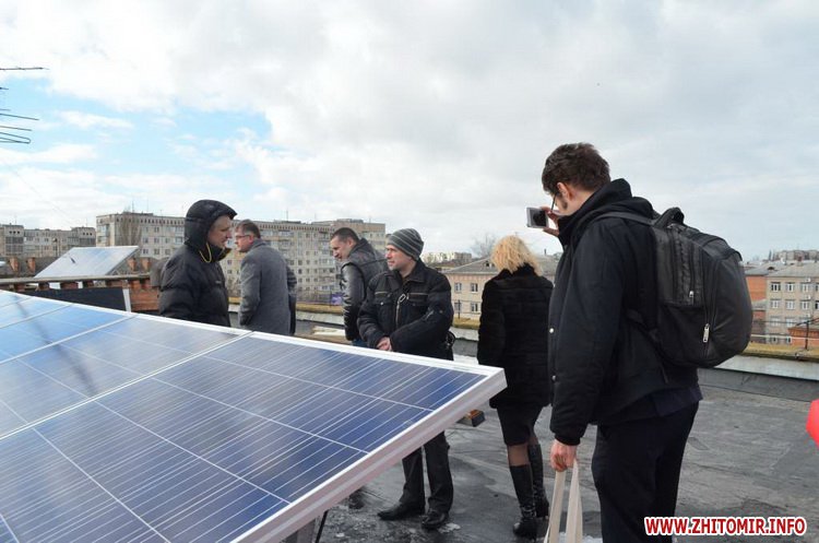 «У рамках проекту «Енергоефективність в місті Житомирі» консультанти з ЄЕВ компанії econcept AG разом з представниками виконавчих органів ради ознайомились з одним із прикладів впровадження енергоефективних заходів у місті Житомирі. Спроектував та виготовив конструкції для кріплення панелей Сергій Кохан самостійно. Монтаж здійснював із колегами. За словами Сергія Кохана, він збільшив виділену потужність для своєї квартири з 1,5 до 30 кВт. Відповідно, для всього будинку (ОСББ) також прийшлося збільшити потужність ще на 30 кВт», - пише сайт міськради.