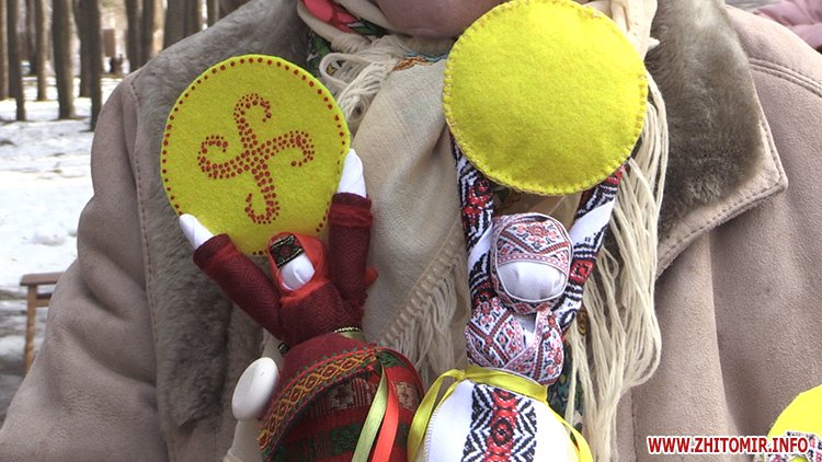 «На Масляну робилась ось така мотанка. Вона робилась на дерев’яній рогульці. Тобто, виламувалось дерево, яке мало ось таких дві гілочки для того, щоб були підняті руки. А в підняті руки лялькам-маслянам вкладали символ сонця. Млинець на Масляну - теж символ сонця. Масляна - це свято сонця, яке прибуває, і наші предки йому поклонялись як божеству. А оцей знак, який вона тримає на сонці - це знак вогню і сонця, сонцеворот або свастика, свастя. І наші предки один одному бажали свастя, тобто, щастя», - розповідає майстриня Ганна Івченко.
