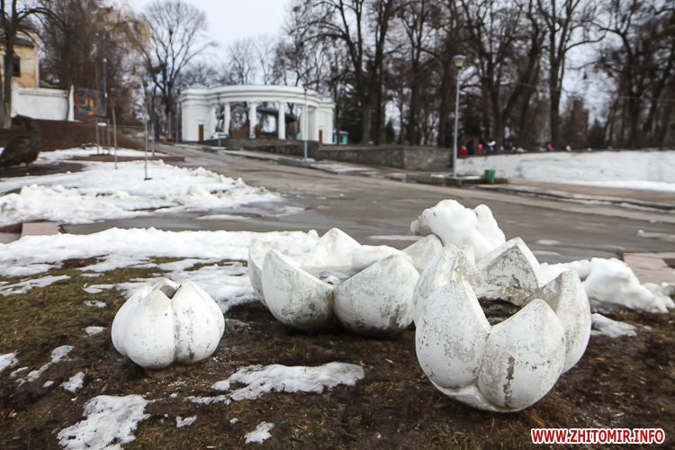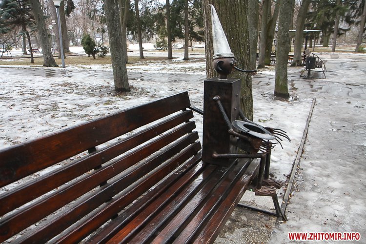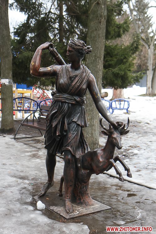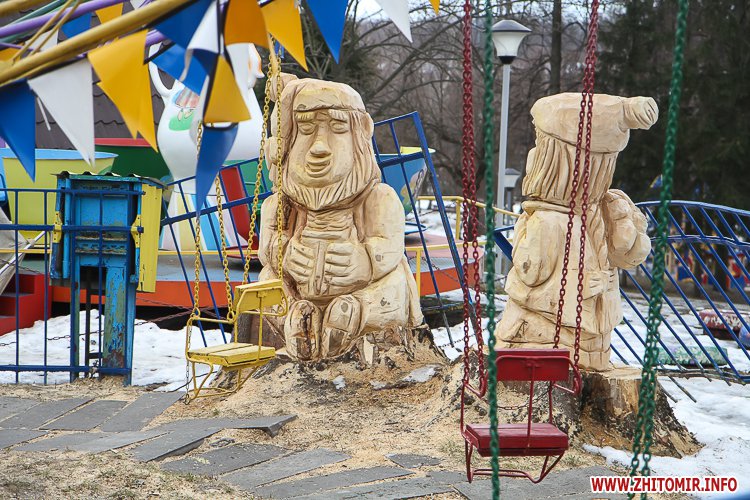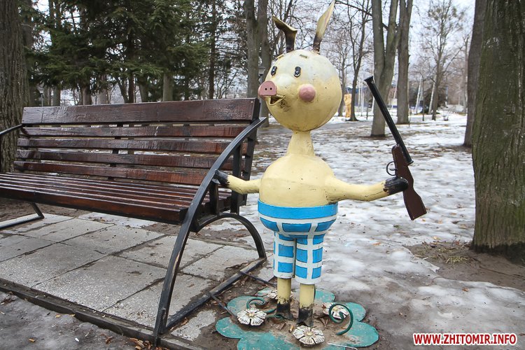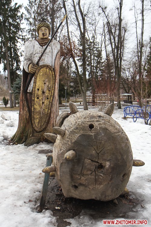 У житомирському парку культури та відпочинку імені Юрія Гагаріна можна побачити чимало скульптур, виготовлених із різного матеріалу та в різних стилях. На одних задум автора вгадується легко, інші – більш абстрактні.