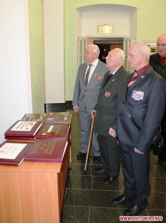 Облрада повідомляє, що ветеранів також вітали: заступник голови облдержадміністрації Ярослав Лагута, народний депутат України Юрій Павленко, депутати обласної ради Анатолій Мелашенко та Наталія Рибак. Зазначимо, що всі названі депутати є представниками Опозиційного блоку, на фото видно, що крім перелічених була присутня також голова фракції Опоблоку в Житомирській міській раді Наталія Леонченко.