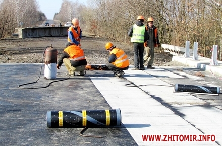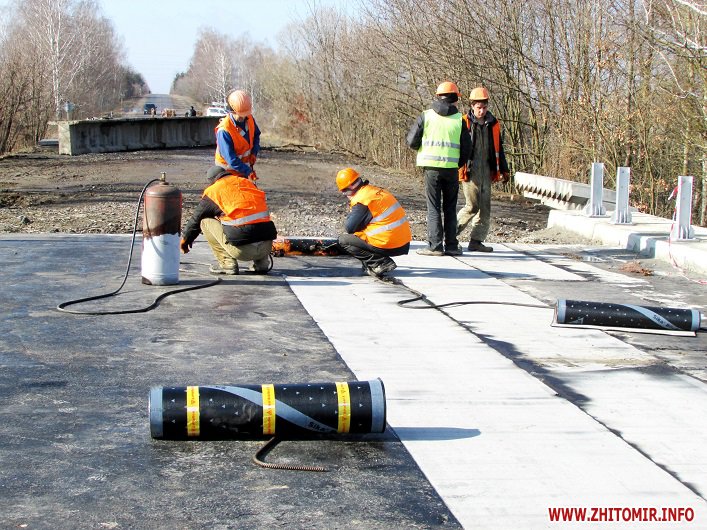 На мосту біля села Рудня-Пошта на трасі Н-03 Житомир-Чернівці майже завершена гідроізоляція та тривають підготовчі роботи до укладання асфальтобетонного покриття.