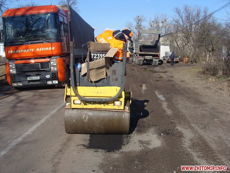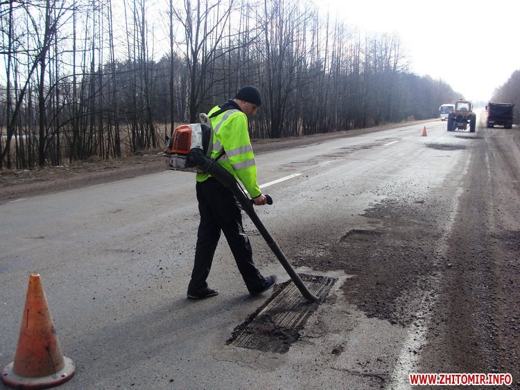 «На замовлення Служби автомобільних доріг у Житомирській області триває аварійна ліквідація ямковості. За тиждень, що минає, підрозділами підрядних організацій на основних десяти державних та територіальних шляхах області ліквідовано близько 2-х тисяч квадратних метрів пошкоджень. З-поміж інших напрямків, активно проводяться роботи на автомобільних дорогах в межах області, де з початку року вже ліквідовано понад 1200 кв. метрів дефектів - це Київ-Чоп Н-06, Р-18 Житомир-Попільня-Сквира-Володарка-Ставище, Р-28 Виступовичі-Житомир», - йдеться у повідомленні.