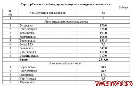 Житомирські депутати можуть дозволити розробити проект зміни меж міста на одній з наступних сесій.