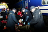 - Якщо для надання допомоги немає нічого, тоді двоє-троє чоловік лягають на лід ланцюгом, тримаючи один одного за ноги, і наближаються до потерпілого.