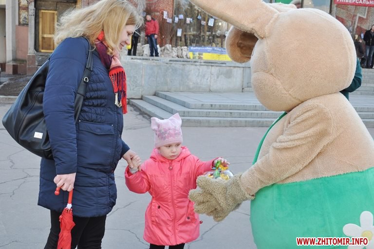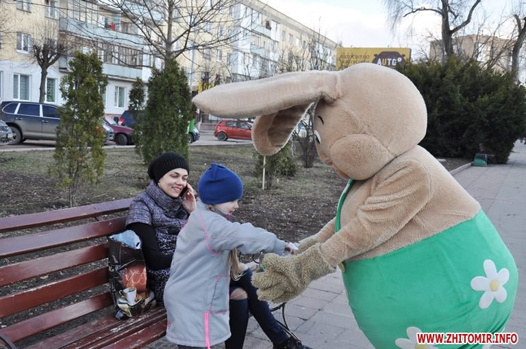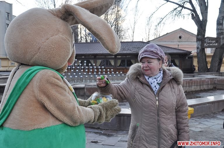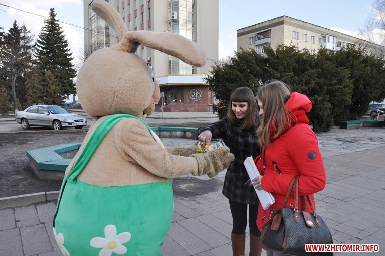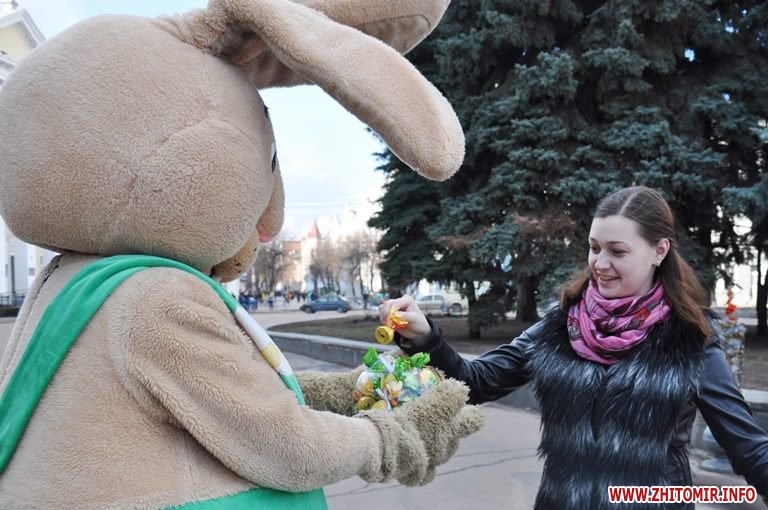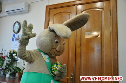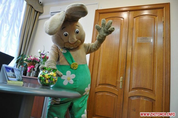 Аніматор у костюмі зайця 7 березня забрав акваріум з цукерками з приймальні голови Житомирської облдержадміністрації, які роздавав від його імені на майдані Корольова та по вулиці Михайлівській.
