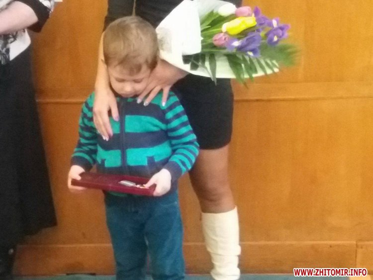 Потім слово надали військовому комісару, який оголосив про нагородження орденом «За мужність» сержанта Сергія Ходоровського (посмертно). Нагороду вийшли отримувати мама бійця та дружина с маленьким сином.