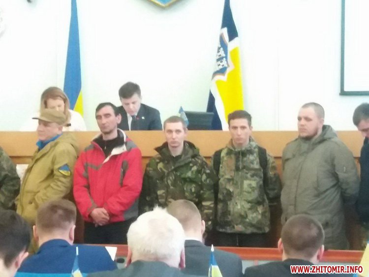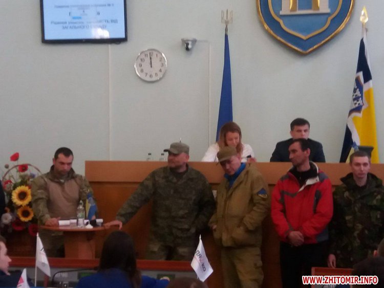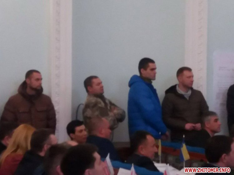 Під час формування порядку денного перед трибуною вишикувалися чоловіки у військовій формі.