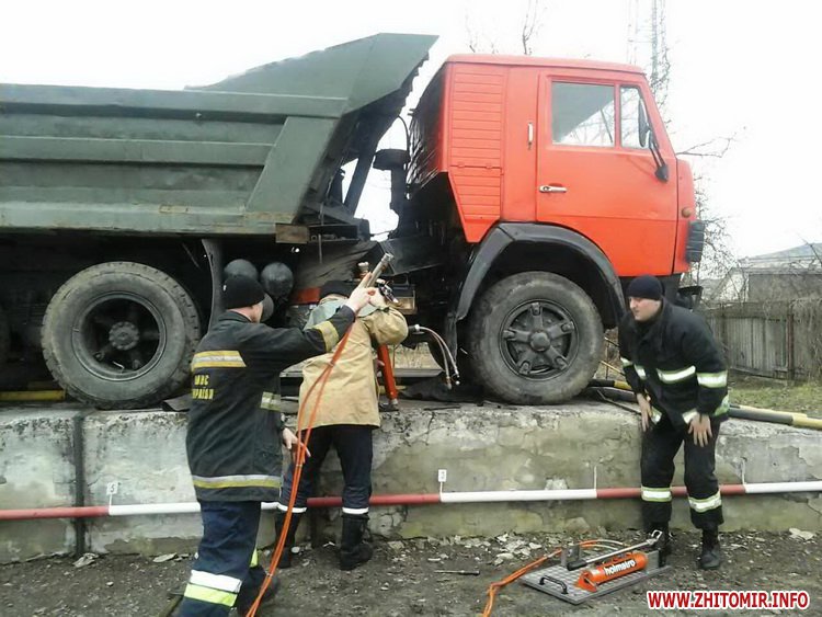 «9 березня о 15:00 до Служби порятунку «101» надійшло повідомлення про те, що у м. Новоград-Волинський на території місцевого підприємства чоловіка придавило кузовом вантажного автомобіля. Необхідна була допомога по вилученню загиблого з металевої пастки. До місця пригоди виїхало чергове відділення рятувальників у складі 4 чоловік. Як з’ясувалося, 58-річний чоловік заїхав автомобілем КамАЗ на «яму», аби разом із напарником відремонтувати вантажівку. Вони тривалий час порались з авто, щоб полагодити підйомний механізм кузова. Пізніше працівники підприємства почули гучний удар. Кузов вантажівки впав прямо на чоловіка. Від такого удару водій помер одразу», - констатують рятувальники.