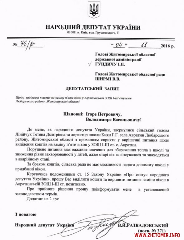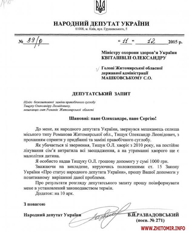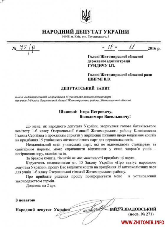 З шести нардепів-мажоритарників від Житомирської області найбільше запитів до місцевих органів влади і управління у Віктора Развадовського (Чуднівський округ), а Павло Дзюблик (Малинський округ) жодного разу не звертався до місцевої влади.