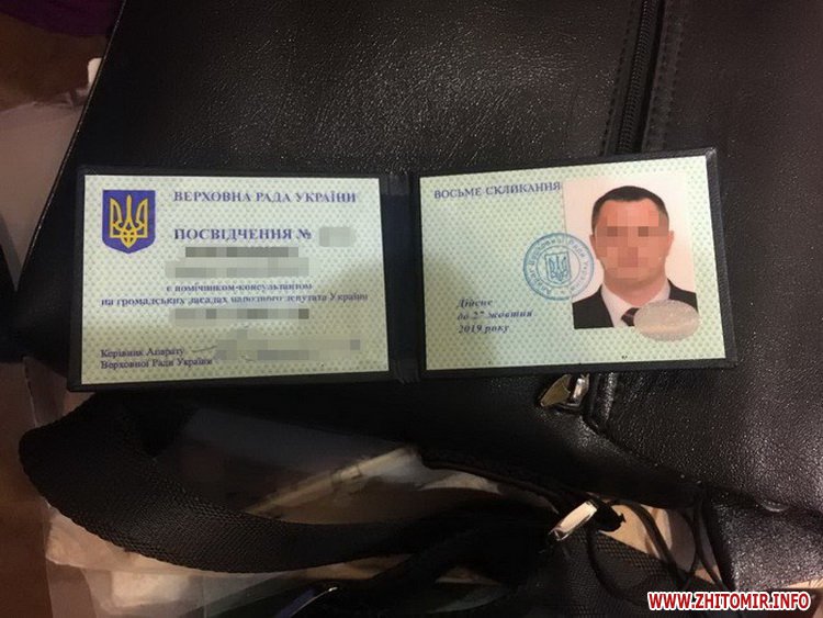 Заступник директора одного з комунальних підприємств Житомирської міської ради, якого співробітники Служби безпеки України спільно з прокуратурою викрили на хабарництві 13 березня 2017 року, виявився помічником-консультантом народного депутата України та представником департаменту контролю за діяльністю правоохоронних органів Мін'юсту.