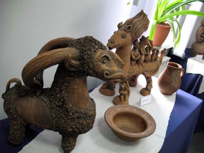 В Житомире в музее космонавтики имени Сергея Королева экспонируется выставка уникальных глиняных работ украинской мастерицы Леси Денисенко-Еременко из города Васильков на Киевщине, который известен во всей Украине как центр гончарного мастерства.