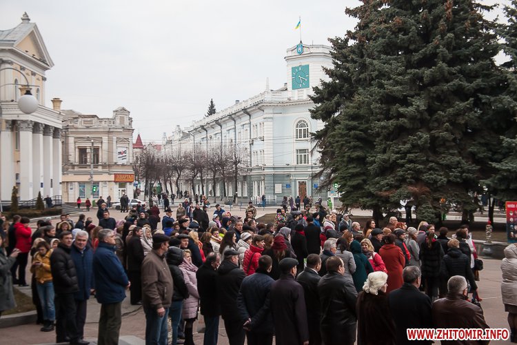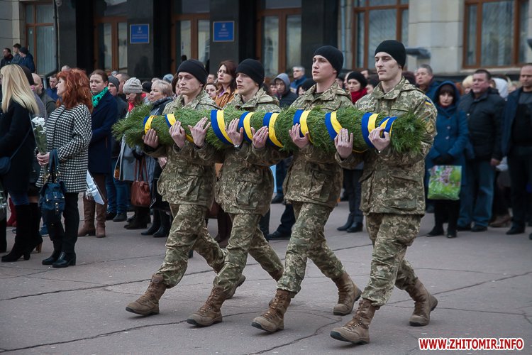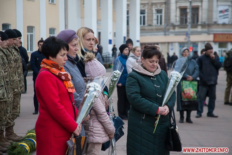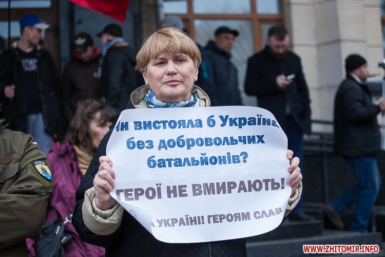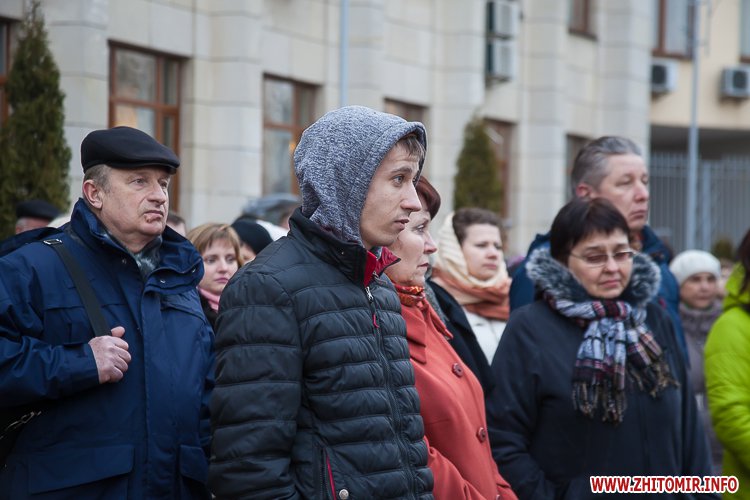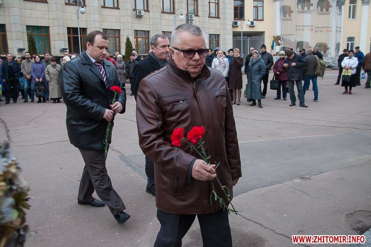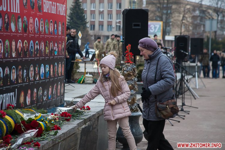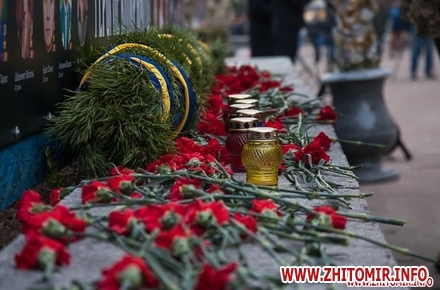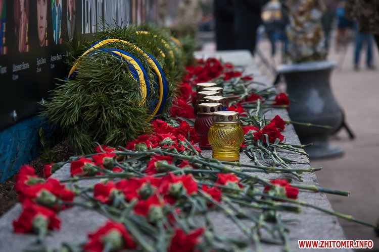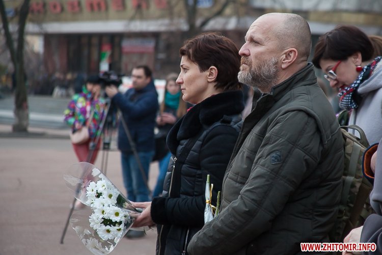 Ввечері 14 березня на майдані Корольова зібралось кілька сотень житомирян. Люди прийшли із квітами, щоб відзначити День добровольця та вшанувати пам’ять полеглих у неоголошеній російсько-українській війні.