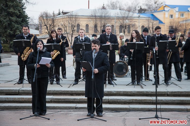 Під час мітингу для житомирян свої композиції виконали естрадно духовий оркестр «Сурми Полісся» та зведений оркестр Житомирського гарнізону у складі оркестру 95-ї окремої десантно-штурмової бригади та оркестру військового інституту імені Сергія Корольова.