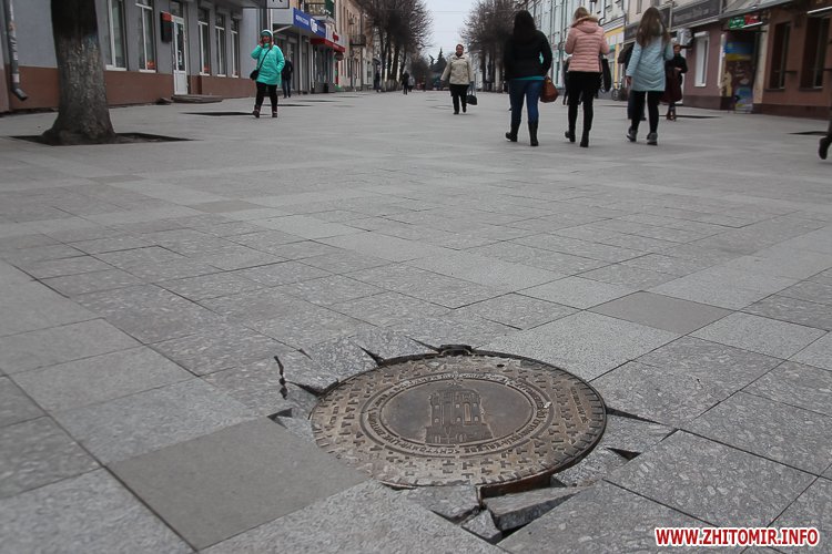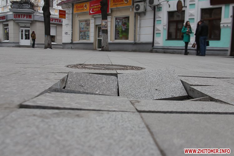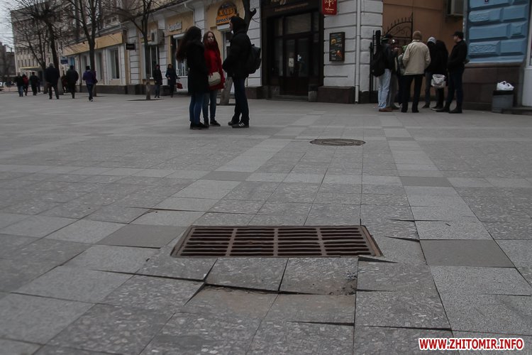 У Житомир поступово приходить довгоочікуване потепління, проте за прогнозами синоптиків, на найближчі два дві – буде прохолодно, однак, як жартують місцеві жителі, зі снігом почали зникати і дороги. Фотокореспондент Житомир.info вирішив подивитися, чи витримала нова гранітна плитка на вулиці Михайлівській цьогорічний сніг та морози.