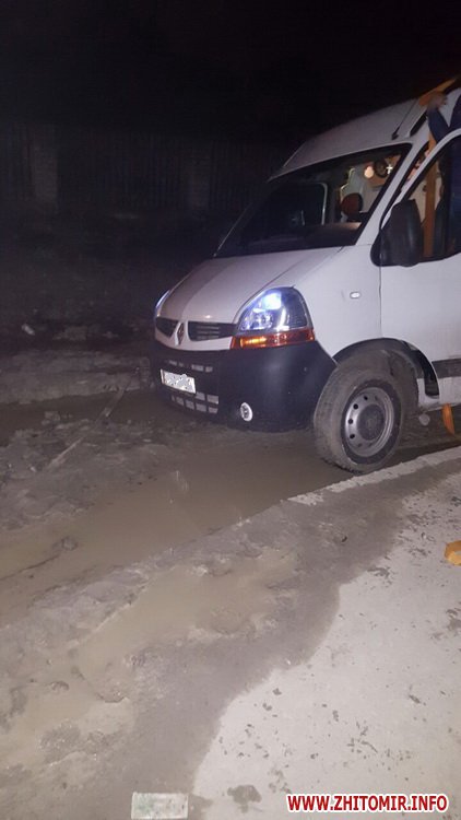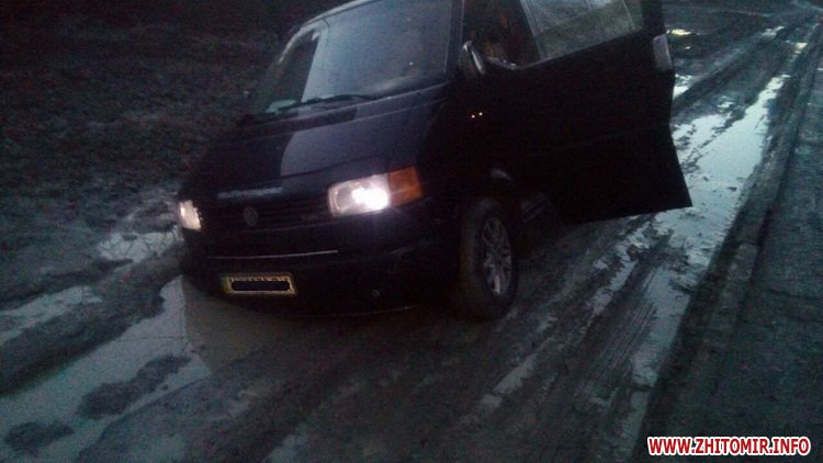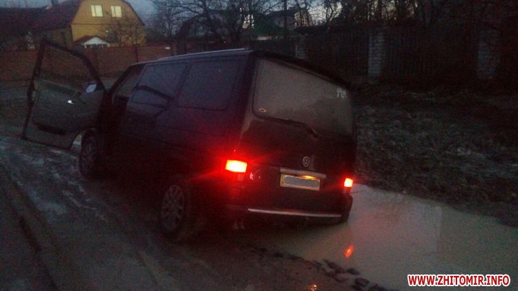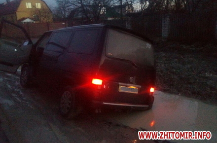 У Житомирі на вулиці Західній, в мікрорайоні Мальованка, 16 березня у «пастку» на дорозі потрапив автомобіль Volkswagen Transporter.