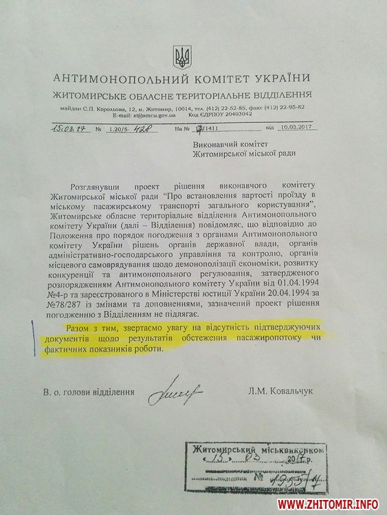 У листі АМКУ, на який посилався Сухомлин, звертається увага на відсутність підтверджуючих документів щодо результатів обстеження пасажиропотоку чи фактичних показників роботи.