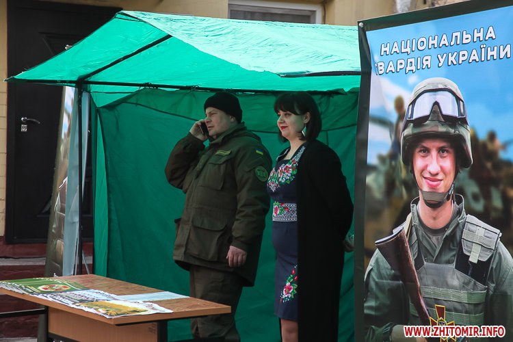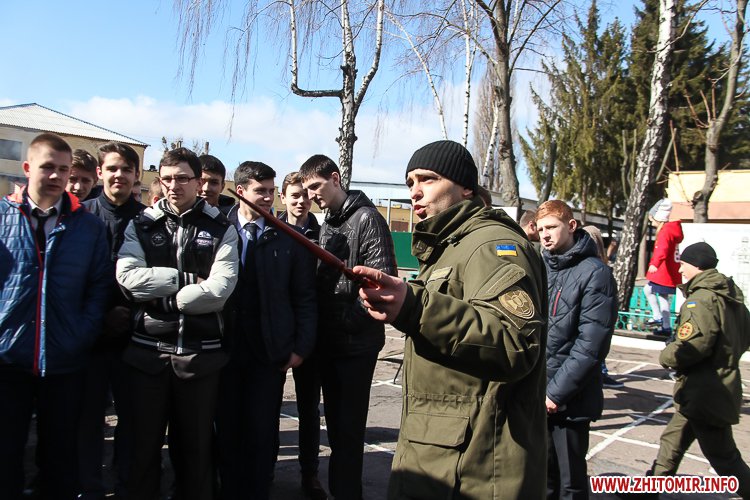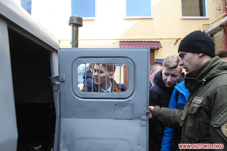 «Сьогодні у нашій військовій частині 3047, яка розташована у місті Житомирі, відбувся день відкритих дверей. На цей захід ми запрошували зокрема студентів Житомирського державного університету імені Івана Франка, а також учнів загальноосвітніх шкіл №5, №22 і гуманітарної гімназії №23. Ми розповіли їм про історію створення Національної гвардії України, адже 26 березня ми будемо відзначати третю річницю з дня її заснування. Наших гостям ми показали, як проживають військовослужбовці строкової служби у казармі та в польових умовах, ознайомили дітей із військовим озброєнням і технікою, роботою кінолога зі службовою собакою, продемонстрували показовий виступ бійців взводу спеціального призначення і, на завершення, запропонували гостям скуштувати нашої «солдатської» каші», – розповів заступник командира військової частини по роботі з особовим складом майор Микола Павлюк.