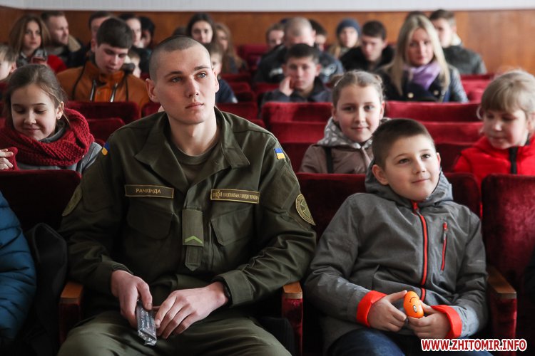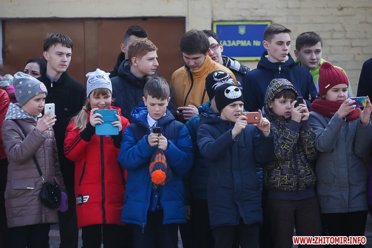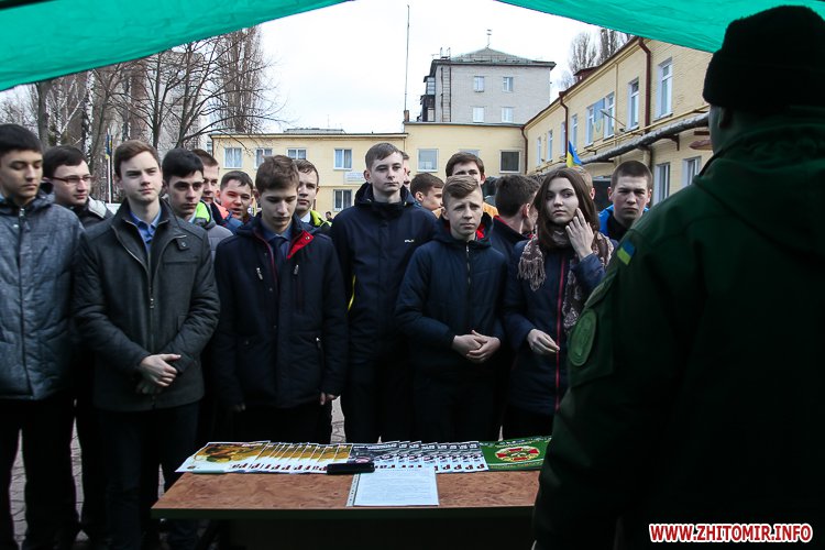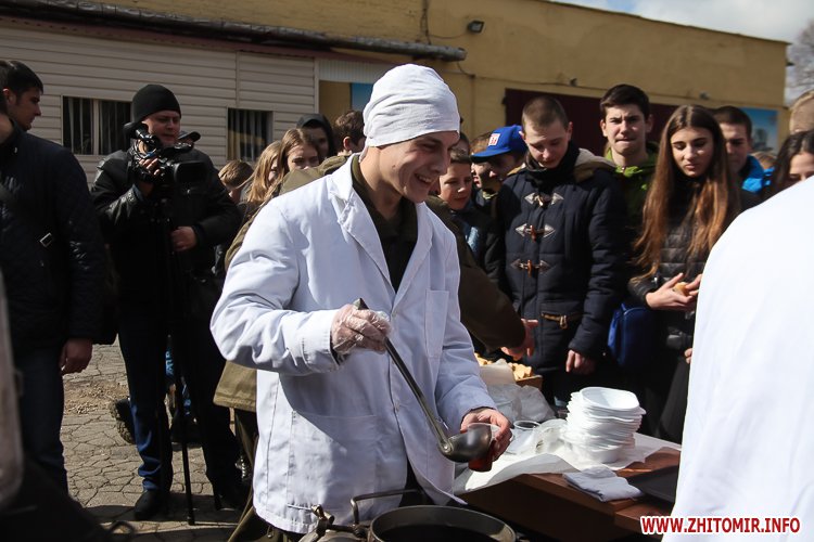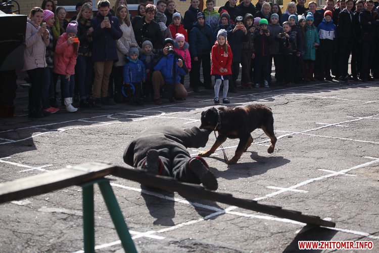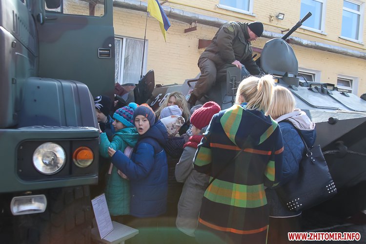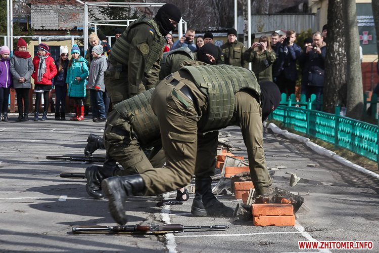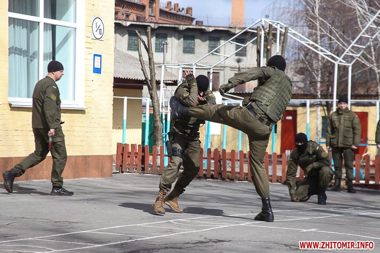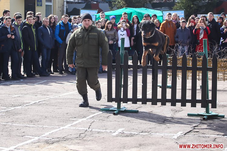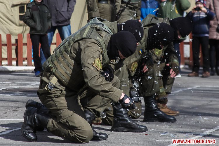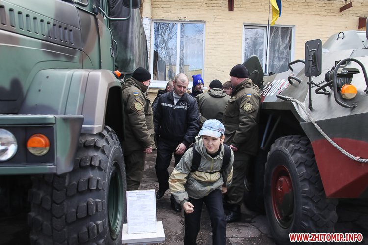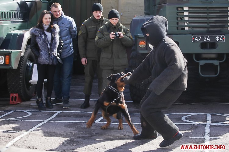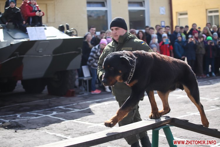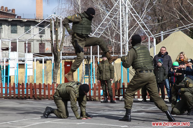 У військовій частині Нацгвардії 17 березня відбувся день відкритих дверей переважно для понад сотні школярів і студентів житомирських навчальних закладів. Спецпризначенці ознайомили присутніх із технікою та озброєнням, показали їм фільм про виконання завдань у зоні АТО, влаштували показові виступи, зокрема й службової собаки, а також пригостили відвідувачів «солдатською» гречаною кашею та чаєм-компотом.