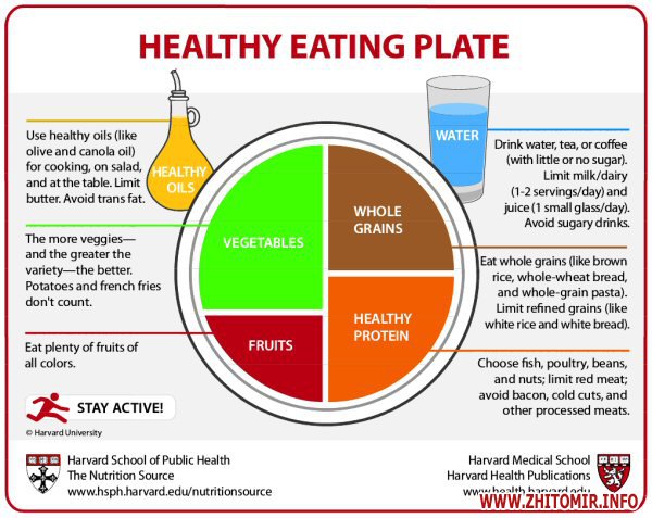 «Тарілка здорового харчування створена експертами Гарвардської школи громадського здоров’я. Це керівництво для здорового, збалансованого харчування, яке подане у формі простої і зрозумілої інфографіки. Така картинка з поясненнями буде щоденно нагадувати про можливості здорового, збалансованого харчування. Просто роздрукуйте її і прикріпіть на холодильник», - радять фахівці.