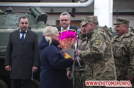 «Представники нашої військової частини хотіли подякувати особовому складу бронетанкового заводу житомирського за вагомий внесок в розбудову держави, за підтримання бронетанкової техніки нашої частини у бойовій готовності для виконання завдань за призначенням у зоні АТО», - сказав заступник командира 54-го окремого розвідувального батальйону з озброєння Олександр Гончар.