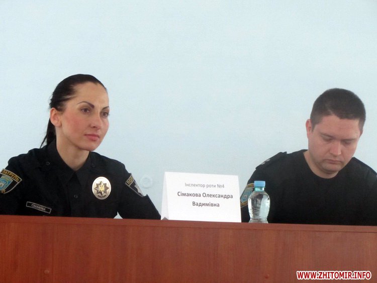 Про це журналістам під час брифінгу 22 березня розповіла інспектор роти №4 управління патрульної поліції м. Житомира Олександра Сімакова, відповідаючи на запитання, як служиться житомирянкам-поліцейським.