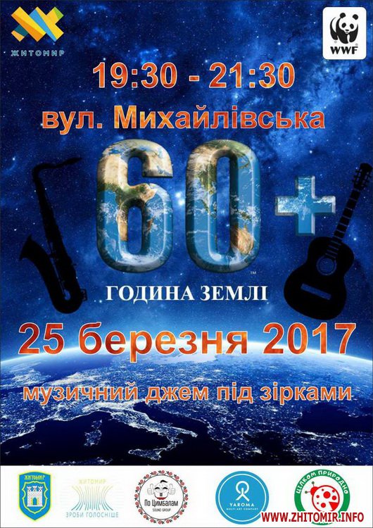 25 березня на вулиці Михайлівській житомиряни зберуться, аби підтримати всесвітню акцію «Година Землі»