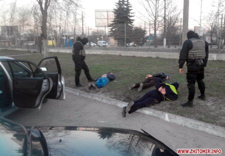 На місці події працювала слідчо-оперативна група Житомирського відділу поліції. Під час першочергової перевірки було встановлено, що транспортний засіб, на якому прибули затримані, незаконно ввезений на територію України, а номерні знаки, встановлені на ньому, належать іншому авто.