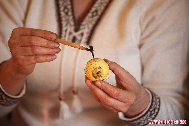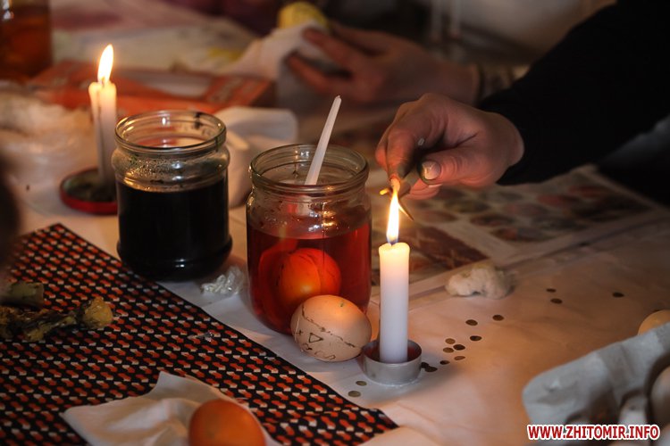 «Ми традиційно, перед Великодніми святами, пишемо писанки, і я проводжу майстер-класи для тих людей, хто хоче навчитися це робити, хто ніколи цього не робив, або думає, що це складно. Моя мета – донести людям, що писати писанки це цікаво, легко, і це прадавня українська традиція, яка повинна відроджуватися і передаватися у спадок. Тому на майстер-класи я запрошую дітей різного віку, і хлопчиків, і дівчаток. Навіть були такі випадки, коли писанки писали чоловіки. Можу сказати, що у них виходить дуже гарно. Сама я пишу писанки вже більше 7 років. Почалося це все з власного інтересу: я хотіла подивитися, що це таке, спробувати. У мене є подруга, Тетяна, ми тоді організували групу друзів і сіли в одні із кав’ярень Житомира, і для всіх провели майстер-класи. Я не вважаю себе майстринею, я говорю про те, що мені легко писати писанки, і так само буде легко писати писанки вам. Люди приходять на майстер-клас, опановують ази мистецтва, і пізніше, приходять додому, мають свій писачок, розуміють методику, і я впевнена, що роблять цей надалі. На кожному майстер-класі я намагаюся зосередитися на Житомирському регіоні. На теренах нашої області писали писанки на червоному тлі, і ці зображення були більш простими», - розповіла Людмила Лобачова.