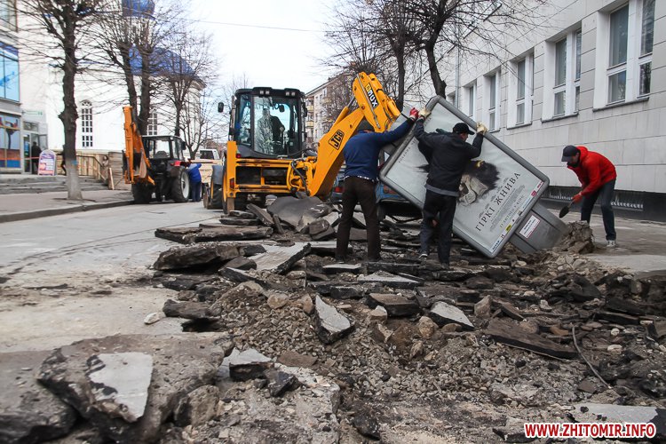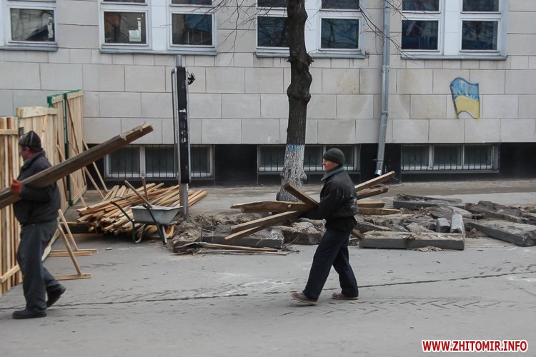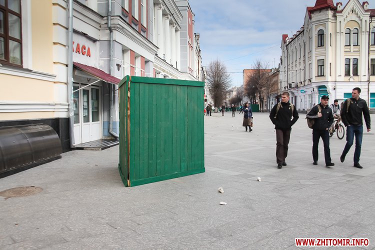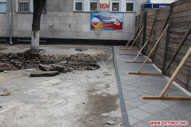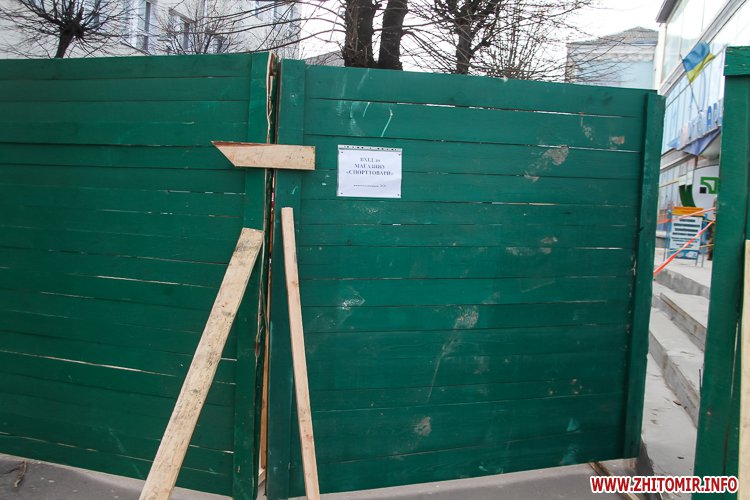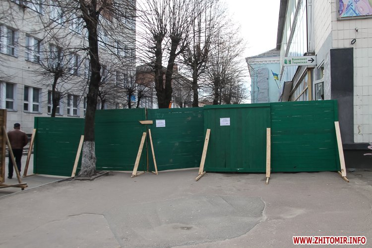У Житомирі 31 березня закрили на ремонт четверту частину пішохідної вулиці Михайлівської. А недоліки, які виявили після зими, обгородили зеленим парканом.