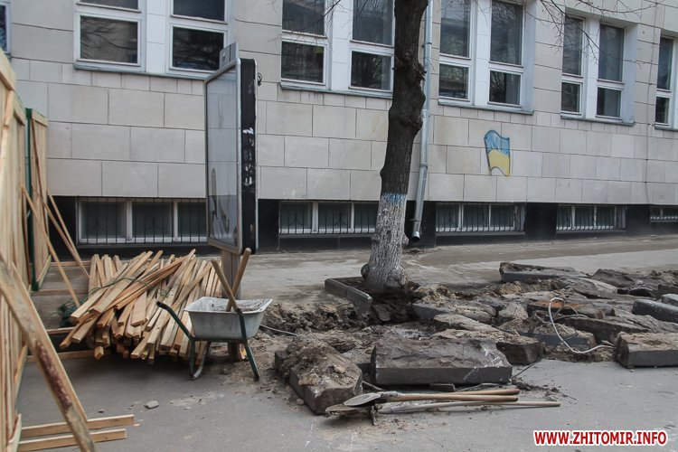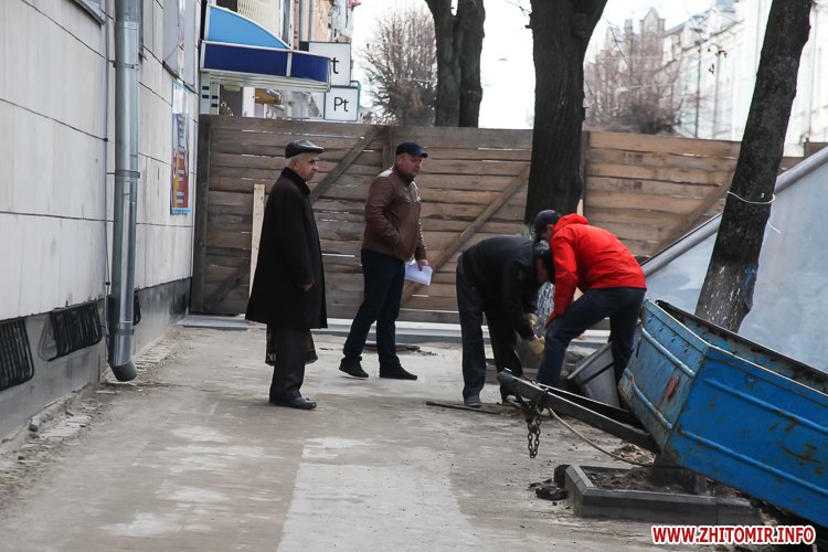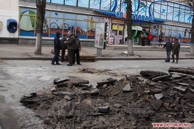 Зокрема закритою для пішоходів заразі є частину Михайлівської, що біля магазину «Спорттовари». Тож, аби дістатися з вулиці Великої Бердичівської на Київську, житомирянам доводиться обходити «Спорттовари» по території Михайлівського собору з торця.