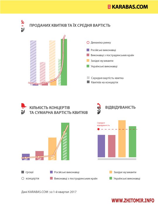 2017 рік почався для українських артистів вельми вдало. За даними аналітиків білетного сервісу Karabas.com, за перший квартал поточного року українські виконавці отримали близько 75% усієї виручки від продажу квитків на концерти, при цьому конкурентами вітчизняним зіркам були тільки західні артисти.