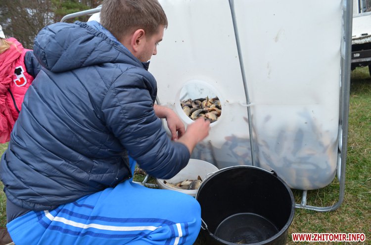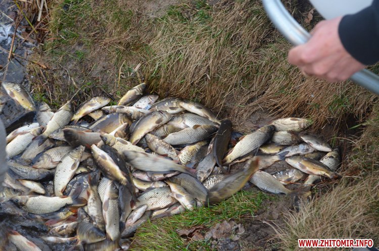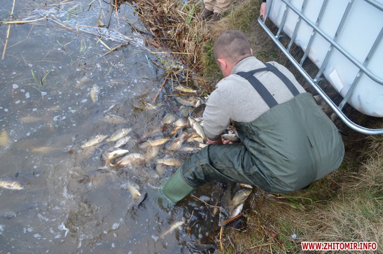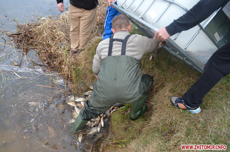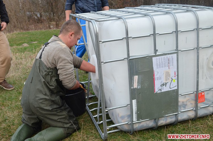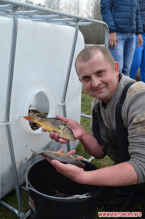«Два тижні тому ми, громадська організація «Житомирський карповий клуб», порушили питання, щоб зарибнити річку, та почали акцію зі збору коштів. До неї долучилися 38 людей. Загалом зібрали 10 тис. 150 грн. На ці кошти ми купили 250 кг риби – від 100 до 500 грамів. Ми випустили коропів у річку Тетерів – у Тригір’ї, за селом, де великий залив», – уточнив Тарас Коцур.