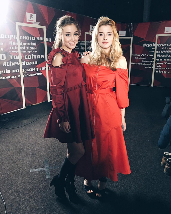 Анна Кукса з іншою учасницею шоу «Голос країни-7» Наіле Ібраімовою за лаштунками «Голосу країни»
