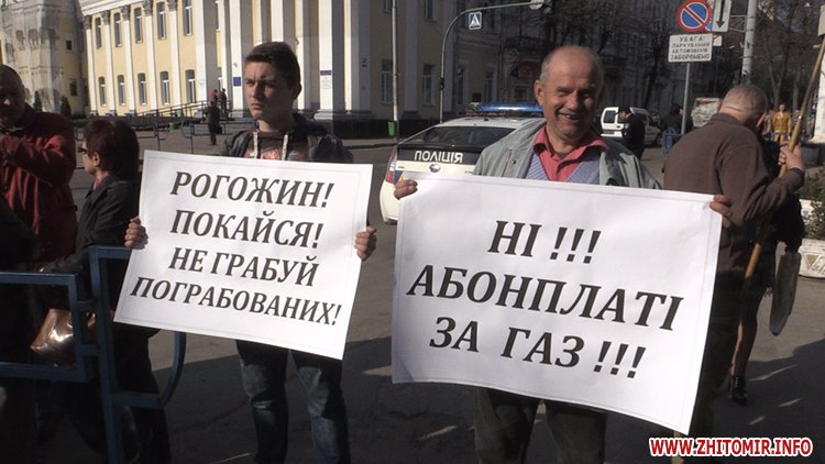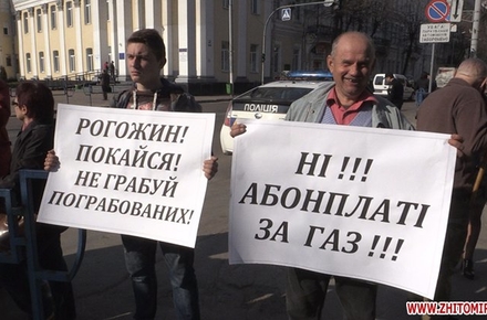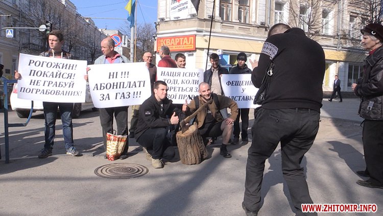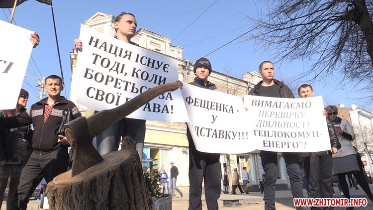 «Рогожин! Покайся! Не грабуй пограбованих!», «Фещенка – у відставку!», «Нація існує тоді, коли борються за свої права» - із такими плакатами вранці 4 квітня під стінами міської ради зібрались кілька десятків людей. Вони прийшли, щоб висловити свою недовіру керівнику КП «Житомиртеплокомуненерго» Дмитру Рогожину та заступнику Житомирського міського голови Олександру Фещенку. Мітингарі кажуть: діяльність підприємства вимагає серйозної перевірки, і вважають, що до цього процесу має долучитись громадськість.